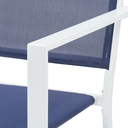 Bring dining and entertaining outdoors with the Mainstays Kingston Ridge 4-Piece Outdoor Conversation Set. This set includes two stackable chairs, one loveseat, and one coffee table. All pieces are crafted with sturdy steel frames that have been powder-coated for rust resistance and durability. The stylish chairs feature sidearms for resting your elbows and blue sling fabric for comfortable relaxation. The coffee table features a tempered glass tabletop that is easy to wipe clean. The loveseat supports 500 pounds while both the chairs support 250 pounds. Elevate your enjoyment of your patio, deck, or outdoor spot with the Mainstays Kingston Ridge 4-Piece Outdoor Conversation Set.