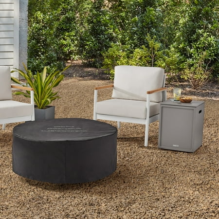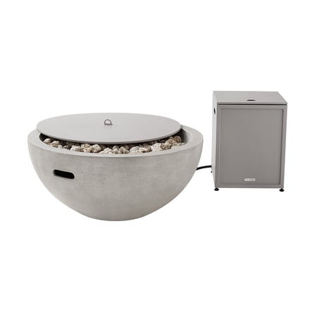 Turn your backyard into a cozy gathering spot with the Better Homes & Gardens 36" 65,000 BTU Propane Fire Pit with Tank Hideaway by Dave & Jenny Marrs. The round, faux stone fire pit has a smooth, Mason texture and is made from a combination of EnvirostoneĀ® and stainless steel, making it durable enough for your outdoor space. The tank hideaway keeps the 20-pound propane tank out of sight and can be used as a table to rest a plate or cold beverage on. With the help of an instant electronic impulse ignition, it's easy to enjoy an evening with friends, watching the fire dance amidst the large pumice stones. This firepit also comes with a water-resistant, all-weather, polyurethane-coated fabric cover to help maintain its beauty and durability when not in use. Arrange an outdoor oasis in your own backyard with the Better Homes & Gardens 36" 65,000 BTU Propane Firebowl with Tank Hideaway by Dave & Jenny Marrs. Take advantage of your garden or patio by upgrading this space with some furniture and decor items. An umbrella and an outdoor furniture set are all you need to enjoy a nice summer day. Outdoor lighting options like string lights, lanterns or spotlights allow you to enjoy your garden after dark. And if you love grilling, look into creating a small outdoor kitchen with a grill.