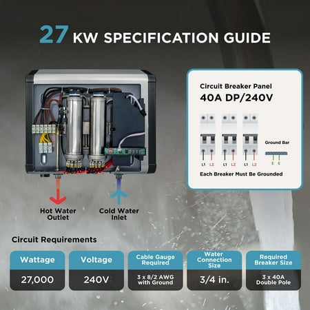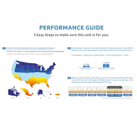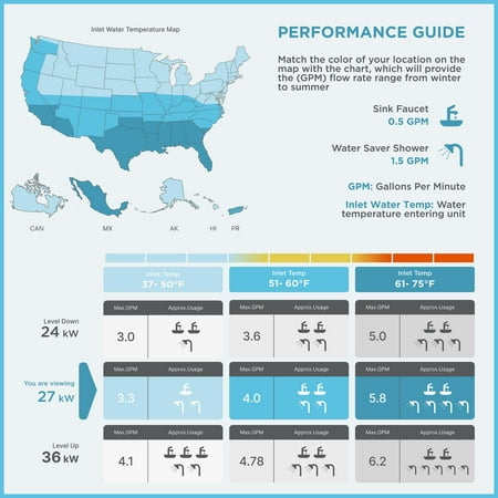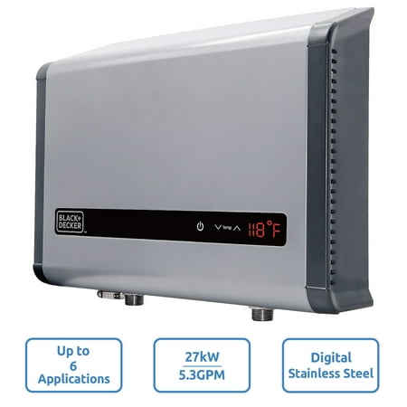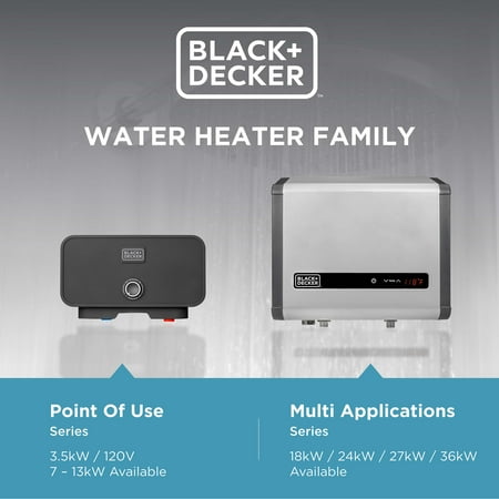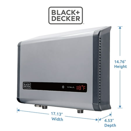 Black+Decker Electric Tankless Hot Water Heaters provides you with endless hot water only when you need it, without the wait or worry of ever running out. Unlike conventional tank water heaters, which constantly consume energy to keep your water hot 24/7, this state-of-the-art, digital technology will instantly reduce your energy consumption and save you money on energy costs simply by heating water on demand. The unit does NOT require any gas lines or venting, and the compact design allows you flexibility to install virtually anywhere - in a cabinet, closet, garage, basement, etc. You can be sure to earn some precious space by installing this unit. (IMPORTANT: inlet temps vary by location and seasonality. Selecting the right water heater depends on your incoming water temperature, flow rate, and desired output temperature. See Performance Guide or Manual before purchasing.)