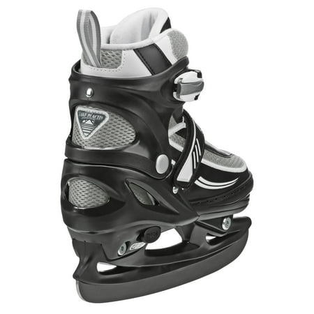 He'll have a blast cruising around the rink in the Lake Placid boys Summit Soft adjustable recreational ice skates. Their kid-friendly fit system expands the skates up to 4 full shoe sizes, allowing him to wear them again and again even as he grows. Insulated soft foam lends warmth and a plush feel to the interior, while reinforced ankle support provides extra stability where it's needed most. Triple closure (locking cam buckle, power strap, and laces) gives added security to every stride. Stainless Steel blades should be sharpened prior to first use.