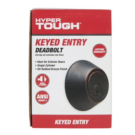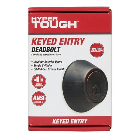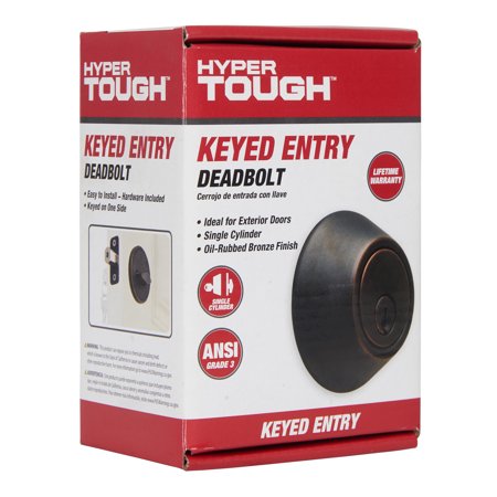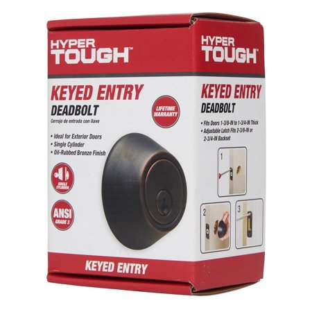 Hyper Tough Keyed Entry Single Cylinder Deadbolt delivers quality and security you can depend on. Operate the deadbolt mechanism by locking and unlocking with a key on the exterior and by a thumb-turn on the interior. Hyper Tough deadbolt provides maximum security with its pick, pry and bump resistant. It features a 1-inch deadbolt, drill resistant and anti-saw pins, and an anti-pry shield. The deadbolt fits most standard doors measuring 1-3/8" to 1-3/4" thick. The deadbolt is reversible; mount on the left or right-handed doors for suitability. The adjustable latch is ideal for doors with 2-3/8" or 2-3/4" backsets. The keyed entry deadbolt meets ANSI Grade 3 standard requirements. The modern style is the perfect addition to any home, whether You're replacing a damaged or worn out deadbolt or starting anew. Designed to provide additional security to your commercial or residential exterior knob, lever, or handle set and is best used for the front, back, and side doors. Easy to install and comes in a two-pack to make changing multiple deadbolts a breeze.