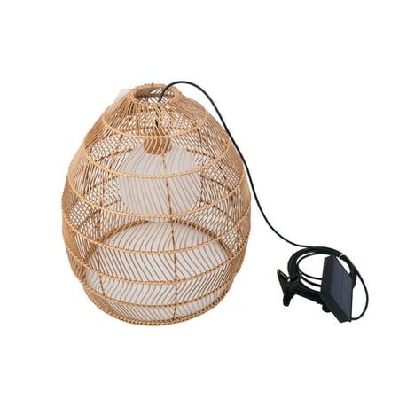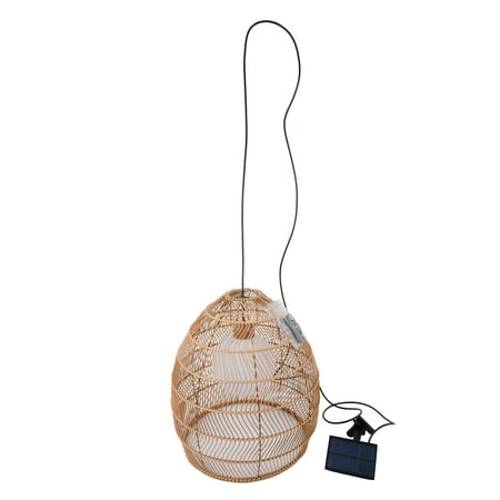 Bring natural texture and warmth to any setting with our Better Homes and Gardens 20'' Natural Woven Pendant. Crafted of all-weather wicker that stands up to the elements year round, the dome rattan shade is complemented by natural accents for a classic and romantic look, while the integrated LED bulb light gives your room a beautiful golden glow. Power-coated metal frame is durable for outdoor use. Hang it on a high place with the clamp attached to the solar panel and turn the switch to ON position before use. Powered by solar energy, this pendant can illuminate your lovely outdoors up to 8 hours after 8-hour fully charge in direct sunlight, offering fabulous shadows and atmosphere. The solar panel is made from polycrystalline silicon, including one piece of 18650/ Li-ion/ 3.7V/2000mAh rechargable battery with 16-month life span. Put our Better Homes and Gardens 20'' Natural Woven Pendant on your patio, porch or any outdoor areas, it will definitely make your lovely space more welcoming. It is also a great holiday gifts for family member or dear friends!
