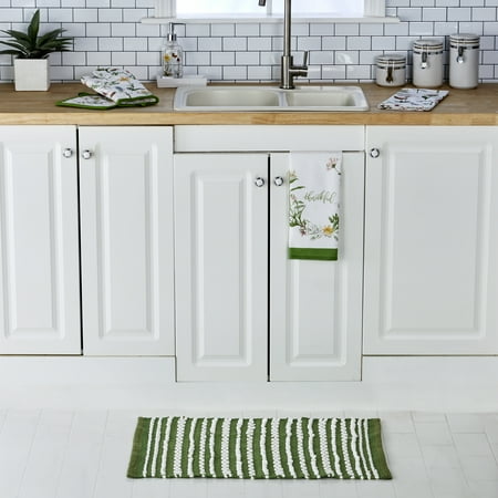 Bring the beauty of the outdoors into your home with the Heirloom Wildflowers collection. This durable woven rug is perfect for your kitchen or any area you choose. Made of cotton, this green woven design features white stripes in various patterns. Use of a rug pad is recommended; not included. Shop the coordinating Heirloom Wildflowers collection to complete the look; sold separately. SKL Home by Saturday Knight Ltd. brings personality, fun and flair to the most intimate spaces in your home with products ranging from bath accessories and shower curtains, to towels, curtains and beyond. Whether your style is upbeat and modern, or classic and cozy, SKL Home provides a look to compliment almost any decor. Combining 40+ years' experience, global design inspiration and premium fabrications, SKL Home continues to lead the way in home accessories.