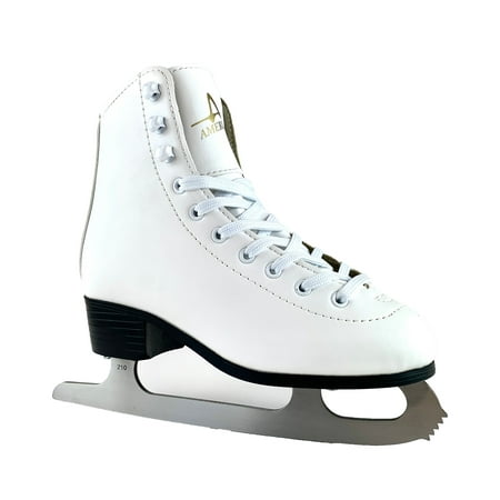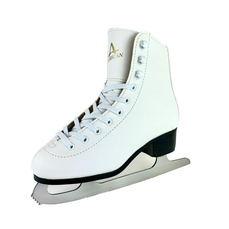 American Athletic Girls' Tricot-Lined Ice Skate is a best selling entry level figure skate. The tricot-lined figure skate is comfortable, fits well and has an easy-care durable PVC boot. The skate features multi-layered ankle support, hollow ground, nickel-plated steel blade, full quarter padding for comfort and a form-fitting padded tongue. A great entry level, pond or rink skate.