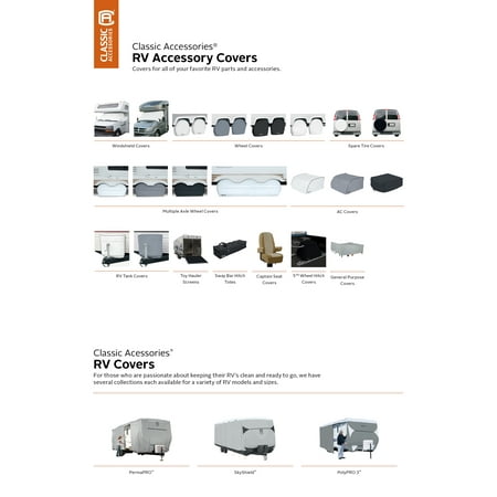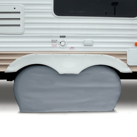 Made to protect dual axle wheels, the Classic Accessories OverDrive RV Dual Axle Wheel Covers helps to keep your tires in great condition. Made from polyvinyl chloride with a laminate knit polyester back that won’t scratch your paint, this wheel cover protects against dirt, rust, and UV rays. With your choice of available sizes and a fast and easy fit, it fits most wheels on the market. Classic Accessories Founded from small beginnings, Classic Accessories has grown in the past 30 years from a small basement operation in Seattle's Roosevelt neighborhood making seatbelt pads and steering wheel covers, to a successful and expanding company now making a wide variety of products from car to boat covers and much more. Innovative, stylish designs define products that are functional and made to last