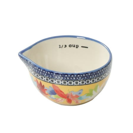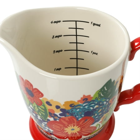 The Measuring Set provides a range of charming essentials for anyone who loves country cooking! This versatile set includes which contains 1/4 Tsp, 1/2 Tsp, 1 Tsp and 1 Tbsp. Stoneware measuring spoons featuring Ree s dazzling dahlias floral pattern that fans have come to love. Additionally, this set comes with Bowls, which includes stoneware ¼ cup, 1/3 cup, ½ cup and 1 cup featuring a beautiful floral design with gorgeous blue accents. Finally, this amazing combination set includes 4 Cup Measuring Cup, a must-have for every cook or baker. This 4-cup measuring cup is easy to use and features the dazzling dahlias floral pattern and pops of red on its handle and bottom. Measuring Set is a valuable addition to your kitchen!