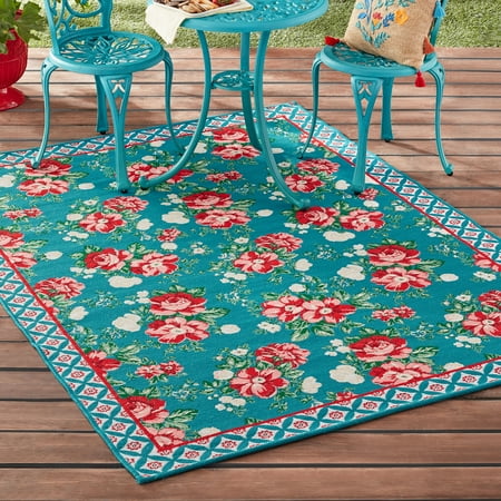 Decorate your outdoor space with The Pioneer Woman 6' x 9' Red Vintage Floral Outdoor Rug. This gorgeous makes the perfect finishing touch to your outdoor space. It features Ree's colorful, signature floral design with a coordinating border. The rug is excellent for placing underneath your outdoor dining area or set it out by your outdoor seating. It's made from material to withstand the elements, while maintaining its looks. Mix and match with other pieces from The Pioneer Woman collection to complete your outdoor area. Add vintage flair to your outdoors with The Pioneer Woman 6' x 9' Vintage Floral Outdoor Rug.Meet Ree:Ree Drummond is a NY Times Best Selling Author, TV personality, social media phenom, and the woman behind the popular Pioneer Woman lifestyle blog that started it all. She's also a lover of butter, basset hounds, Ethel Merman, her hunky, cowboy husband Ladd, and their four kids. Her casual country style and delicious recipes have made her a go-to for all things cooking and entertaining.