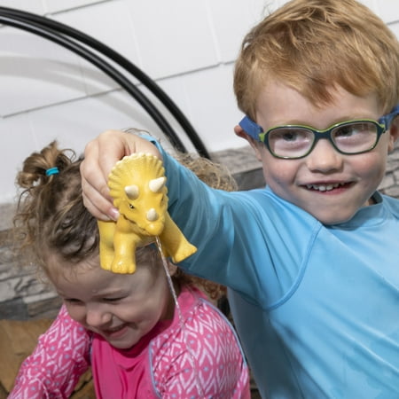 Create a mini water park right in your backyard with the Dino Showers Water Table⢠by Step2. The two-tier toddler water table design creates a showering splash below! Just scoop up water from the pond and pour into the top tray to make it rain. Watch as the rainfall activates the maze-like spinners and ramps, a great way to show a cause and effect relationship. From the side flipper to the put-and-place maze pieces, kids will have lots of splish-splash fun with the included water table accessories! As an added benefit this toddler water table is eligible for: Pickup Today and Ship From Store to make your shopping experience more convenient!