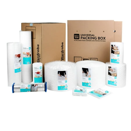 One size can fit several different household items with this Pen + Gear Universal Packing Box (sold with one protective bubble roll and 4 foam corners). This box is ideal for moving or storing large items like flat screen televisions, mirrors, framed wall art pieces, and more. Use the protective bubble roll and 4 foam corners (included) to protect your television or art from scratches, dust and other damages during a move or when in storage. This box is easy to assemble and is adjustable to fit many different sized items. When fully nested, the box measures 29” x 6” x 37” on the small side, and can be adjusted larger up to 58” x 6” x 37” for larger items. This box is equipped with hand holes for easy carrying, and boasts a built-in tabbed locking mechanism to secure the 2 sides of the box together. The box comes as two separate pieces that slide together over the opposite ends of the television, framed art piece, or mirror. Assembly instructions are included on the box.