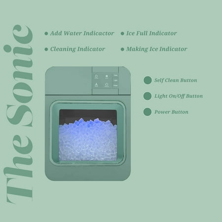 The Sonic Countertop Ice Maker is an efficient appliance that allows you to effortlessly produce ice cubes in the comfort of your own home. With its sleek design and user-friendly features, this ice maker is perfect for your home, or bar. Simply fill the water reservoir, and let the appliance work its magic. Please note that countertop ice makers are designed to make ice, and not store it. For optimal results, please store ice in freezer as soon as the basket is full. The New Sonic Countertop Ice Maker is not only convenient but also easy to maintain. With a removable ice basket and a simple drainage system, cleaning and disposing of excess water is a breeze.