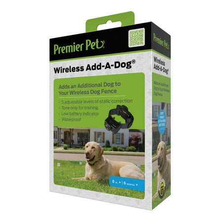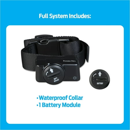 The Premier Pet™ Wireless Add-A-Dog collar allows you to expand your current Premier Pet Wireless Fence (GIF00-16917 or GIF00-16347) or the Guardian Wireless Fence to contain an unlimited number of dogs, or can be used as a replacement or extra receiver collar. When used with any of these wireless fence systems, a circular barrier keeps your dog safely in your yard. Coverage is adjustable up to 1/2 acre and is expandable for additional coverage area. This waterproof receiver collar is adjustable up to 27”, making it a great fit for both smaller and larger dogs. A low battery indicator on the collar will alert you when the collar battery (GAC11-16351) should be replaced. The collar has 1 level of tone only for training and 5 adjustable levels of static correction so that you are able to choose which level works best for your dog. A safety time-out feature will stop correcting after 30 seconds should your dog get outside of the boundary zone. Give all of your dogs freedom to play and yourself peace of mind with the Premier Pet Wireless Add-A-Dog!