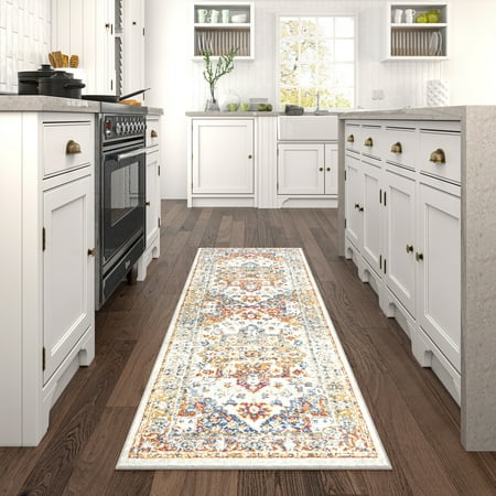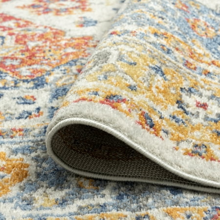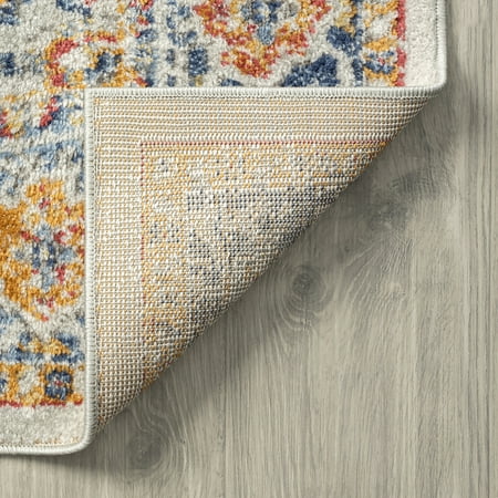 Distressed medallion design beautifully enhances any room of the home. This colorful Oriental area rug has a unique vintage Boho feel. Natural stain-resistance and no additional treatments makes it kid and pet friendly. Transitional 2x8 Area Rug (2'3'' x 7'3'') Oriental Cream, Gray Indoor Runner Easy to Clean. Good fit for hallway, entrance, mudroom. Vacuum on medium pile setting to remove debris taking care to avoid fraying the edges. Spot clean with water, do not bleach. Rotate periodically to extend the life of your investment.