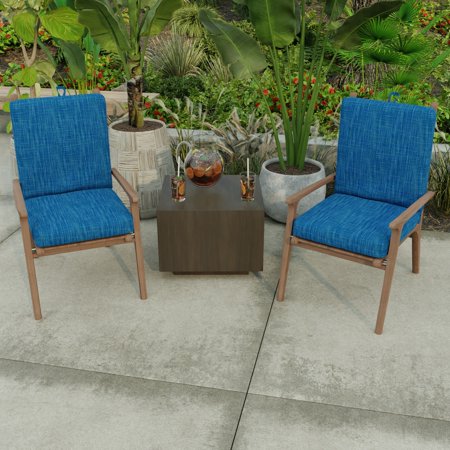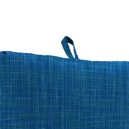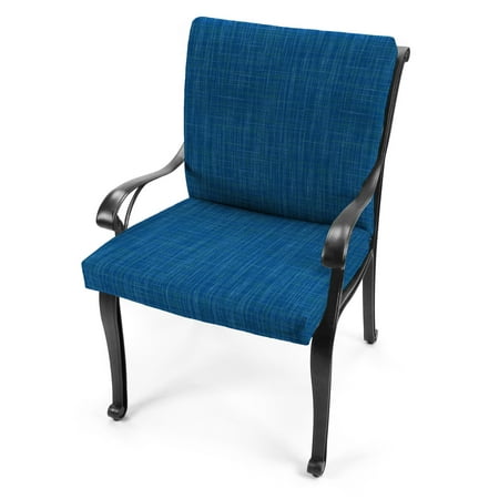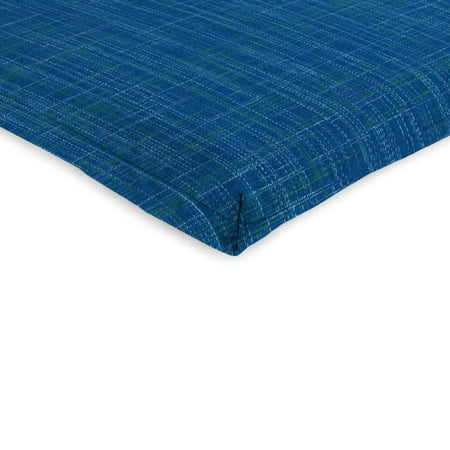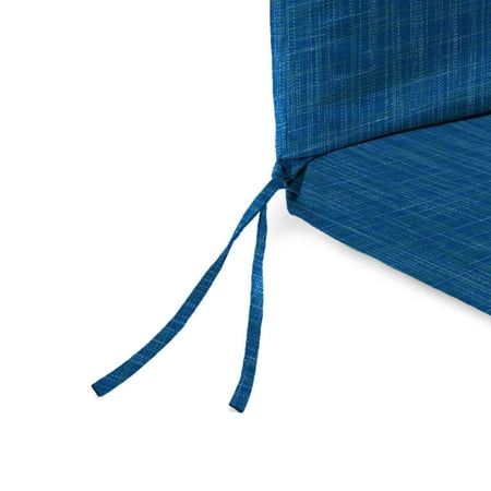 Create your own outdoor oasis with this colorful 21-inch by 44-inch French Edge Chair Cushion that makes relaxing and dining on the patio a pleasure. Filled with layered polyester fiber and finished with French edges, this chair seat and back cushion adds both classic style and soft comfort to any patio seating. This durable outdoor cushion is made to withstand any weather, featuring water-, fade-, mold- and mildew-resistant fabric that has UV protection for hours of fun in the sun. Windy days and wiggly children are no match for this patio chair cushion that has attached fabric ties to keep it secured to your furniture. Equal parts pretty and practical, this versatile cushion can be flipped for use on either side and features an attached hanger loop for easy storage. Worries about a splash of soda or spilled BBQ sauce are a thing of the past, thanks to the stain-resistant fabric that's super easy to care for. Just spot clean with a soft cloth, warm water and mild soap, and your chair cushion will look good as new again. One 1-piece outdoor chair cushion. Overall dimensions 21" width x 44" length x 3.5" thick; Back 24" height; Seat 20" depth COMFORTABLE AND DURABLE. Filled with layered polyester fiber to add soft support and retain the cushion's shape. UPDATE WITH EASE. Add style and comfort to your outdoor furniture with this replacement chair cushion. SIMPLE TO STORE. Attached hanging loop makes storing your new cushion fast and convenient. SECURE TIES. Corner fabric ties keep the chair cushion in place on your outdoor furniture. EASY TO CLEAN. Keep your outdoor cushion looking new by spot cleaning with a soft cloth, mild soap and warm water. VERSATILE DESIGN. Finished on the front and back so the cushion can be flipped for use on both sides. FINISHED LOOK. French edges add detail at each corner, creating a classic appearance. BETTER FIT. Designed for a tailored fit on most patio dining and lounge chairs. Actual colors may vary from screen representation