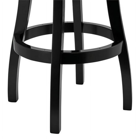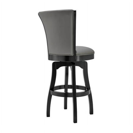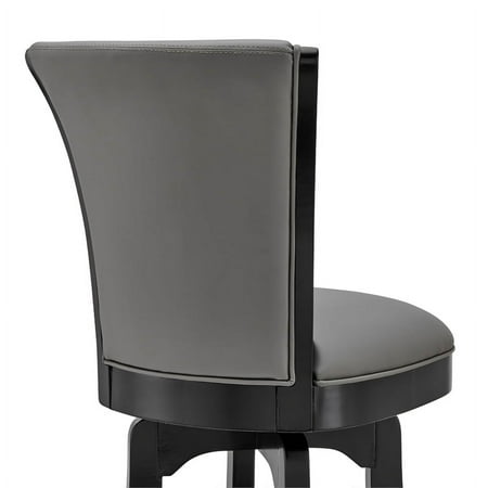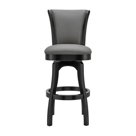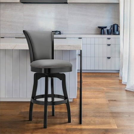 The Armen Living Raleigh rustic armless swivel barstool is a beautiful addition to the contemporary kitchen counter or bar. This elegant barstool features solid wood construction, and a plush faux leather upholstered seat and back. The Raleigh barstool features a 360-swivel function and footrest, allows for optimal user mobility. Ideal for the modern home, this barstool is sure to enhance your dwelling. The plush padded seat with high density foam will provide you with all day comfort. The solid wood back is ideal for posture alignment and an unmatched support for days on end. The foundation of the product is supported by solid wood for a chic and stylish aesthetic without comprising practicality and functionality of this item. . We stand by the quality, the craftsmanship and the integrity of our product by offer 1-year warranty for all our products. We want our customers enjoy our product and we will always be there to help with our top-notch customer service support. The Raleigh Collection is available in a 26" counter or 30" bar height, available with or with out arms. Also available in chestnut faux leather with Kahlua finish, or gray faux leather with black finish. Features : Mid-century modern and contemporary bar or counter height wooden barstool Unique rounded back and added footrest enhance stability and support 360 degree swivel feature allows for high mobility Product Dimensions: 20"W x 21"D x 35"H SH: 26" Sturdy construction for years of enjoyment Specifications : Product Dimensions : 41"H x 23"W x 23"D Product Weight : 24 lbs Seat Height : 26"