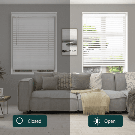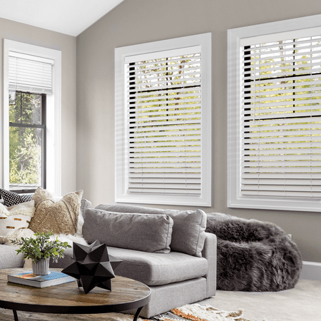 Chicology cordless faux wood blinds deliver as an apex of innovation and practicality among traditional Venetian window blinds. Our strong thick 2" faux wood slats are smooth white slats designed to reflect the look and style of natural real wood at an affordable price. Manufactured with commercial-grade PVC, our cordless faux wood blinds are durable and versatile for any environment. Materials are made from specialized PVC that reinforces resistance to warping and moisture. These characteristics allow you to install them in just about anywhere: humid bathrooms, kitchens, living rooms, bedrooms, and more. Chicology' s cordless faux wood blinds are custom made to fit all windows from small to large. These cordless faux wood blinds have an industry-standard 1/2-inch deduction. Simple 3-step installation just measures, mount the brackets and fix them in the shade and valance. The convenient cordless feature allows you to control the privacy of your home and window light filtration. Its cordless lift mechanism is best for kids, providing safety for children and pets from potential cord hazards. Easy to use allowing users to raise and lower the shade to any desired height with a simple tug.