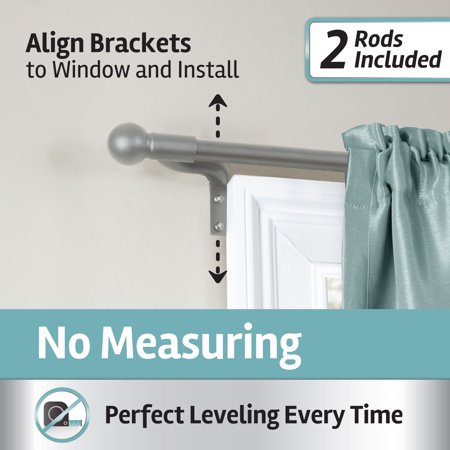 With Smart Rods, the future of window rods is here with a smarter choice that makes it easier than ever to upgrade your room décor. Not only will the Smart Rods Café Window Rod add a touch of elegance to your room, but it offers easy installation and perfect leveling every time with no measuring needed. This decorative curtain rod adjusts to fit spaces from 18 to 48 inches. Installation is easy, with just three steps needed (and no measuring): Simply align brackets to your window and install; then secure the rod with curtains already attached; and then style your panels as desired. The window rod’s rich brushed nickel finish and decorative ball finials will complement your window panel and room décor choices. Easy-to-follow instructions, mounting brackets and hardware are included. This set includes two Easy Install Cafe Window Rods.