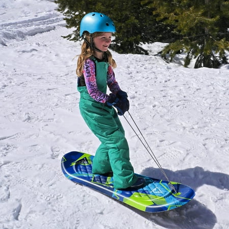 The Artikfun Premium foam snowboard sled was designed and for beginning riders wanting to train for standing. Adults can pull toddlers along snow trails while contoured molded deck grips keep a steady footing. The snowboard sled can also be ed as a sit-down or prone position sled. A tow rope with handle is included in a top-loading deck plug. Foam construction holds integrity in cold temperatures and does not shatter as plastic competitor sleds.