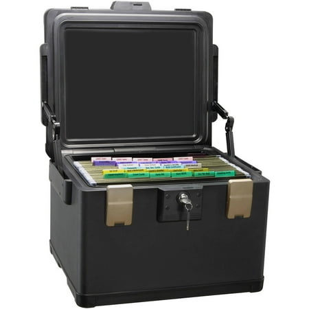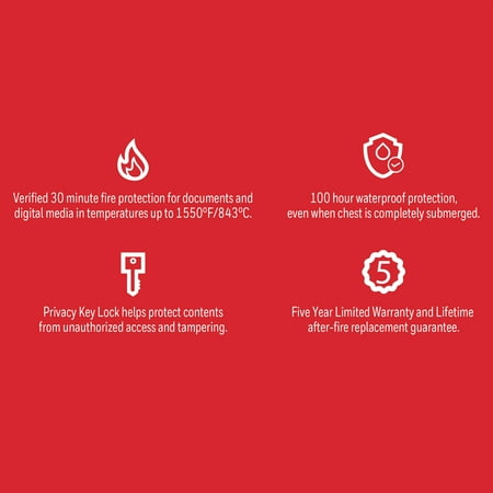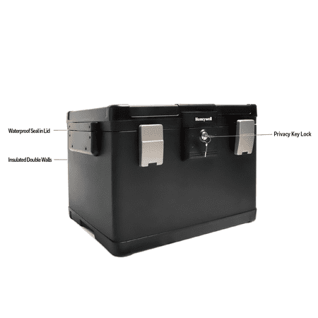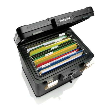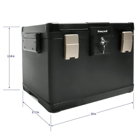 Honeywell Safes, Fire Safe waterproof filing safe box allows you to keep the important letter, A4, and legal size hanging files that fit inside this sturdy safe and can be protected from fire and flood. This Fire Safe Box has a 1-Hour UL Fire protection rating for up to 1700°F / 927°C. On the other end of the extreme, we also have a 24-hour waterproof seal that is verified to keep contents dry, even when submerged 39 inches / 1 meter underwater! The safe comes with 2 entry keys for added security so that you can give access to one other person, in case one of the keys is lost. This versatile chest can accommodate either letter-size hanging folders from left to right OR legal-size hanging folders from front to back. 1.06 cubic feet of storage. This chest weighs 84 lbs.