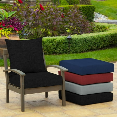 The Arden Selections Outdoor Deep Seat Cushion Set is a great way to update your outdoor conversational furniture with beautiful patterns and comfort without buying a whole new furniture set! This set comes with a large pillow back that features a welt detail and a deep seat bottom. The pillow back measures 25"W x 22.5"L x 6.5"T, and the bottom cushion measures 24"W x 24"L x 5.75"T fitting most standard deep seat style seating and club chairs. Our Evertru Printed Polyester outdoor fabric is fade resistant and offers easy cleaning with just soap and water. Inside this outdoor cushion is patented 100% ever LUXE polyester fiberfill to help it retain shape and provide long-lasting comfort during outdoor use. Fibers within are oriented in a vertical position, which provides structure and springing replacement patio cushions. This outdoor cushion is UV treated and is intended for use on your patio or deck; however, we recommend bringing it indoors when it rains or when not in use to preserve its lifespan and keep it looking beautiful.