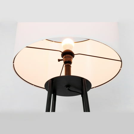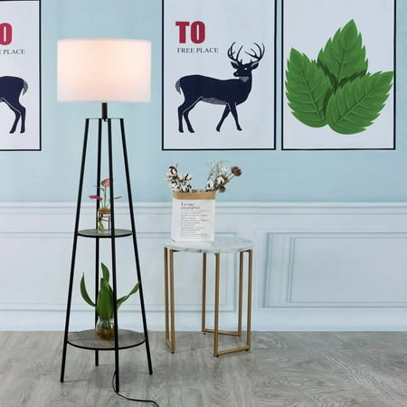 The Mainstays Etagere Floor Lamp with Matte Black Finish and 2 Wood Shelves creates a fun mid-century modern feel while also being functional. This matte black floor lamp stands 62 inches tall and features 2 wood finish shelves. A 5-foot cord makes it easy to place this Mainstays lamp anywhere in the room you need to add some soft light. The Mainstays Etagere fllor lamp includes a white lampshade that measures 14.75-inches in diameter and 10.25-inches high; as well as an energy-saving 5-watt LED light bulb that stays cool to the touch, even when lit. The Mainstays Etagere Floor Lamp, with Matte Black Finish and 2 Wood Shelves is the perfect floor lamp to upgrade the look of any room in your house.