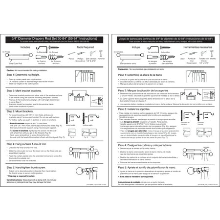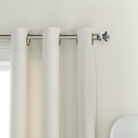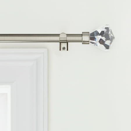 This beautiful Mainstays rod set, with its crystal-clear faceted finials, will will add a touch of sparkle to any room of the home. The sturdy steel rod and brackets will support curtains panels of various weights, from light-weight sheers to heavier weight blackout curtain panels. Rod telescopes for windows from 30 inches to 84 inches wide, for the perfect fit over your window. Brackets will project 3 inches from a wall. Instructions included for easy installation. For hollow drywall, our self-drilling anchors require no power drill to install. The lustrous nickel rod finish will complement color or style of window curtain.