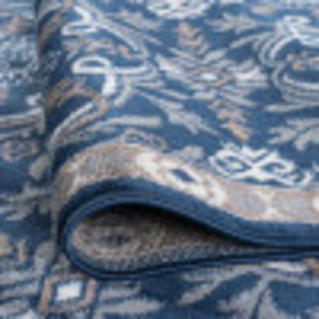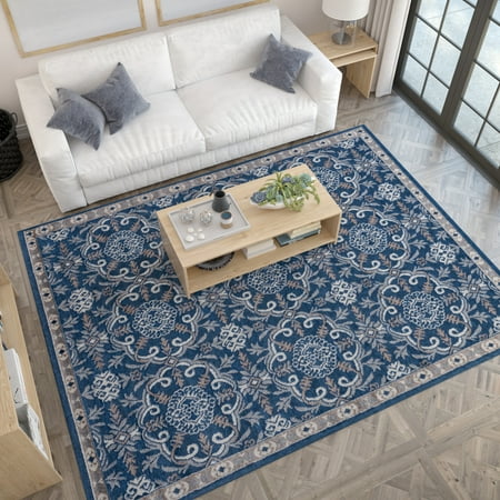 Botanical motifs intertwine to create this transitional brocade area rug design. A fitting complement to multiple decorating styles including shabby chic, farmhouse, and boho. In fashionable colors. Quality power loom construction of soft polypropylene yarn with jute backing offers a great value. Vacuum on high pile setting; Spot clean with water when necessary. Do not bleach. Traditional 8x10 Area Rug (7'10'' x 10'3'') Damask Navy, Beige Living Room Easy to Clean. Good fit for living room, dining room, bedroom. Vacuum on medium pile setting to remove debris taking care to avoid fraying the edges. Spot clean with water, do not bleach. Rotate periodically to extend the life of your investment.
