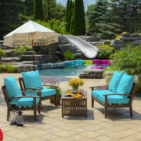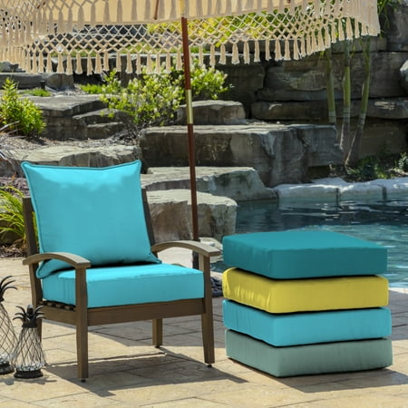 This Arden Selections outdoor Deep Seat Cushion set comes with a large pillow back that features a welt detail and a deep seat bottom. The pillow back measure 24"W x 21"L x 6"T and the bottom cushion measures 24"W x 24"L x 5.75"T. The durable, weather-resistant polyester fabric ensures vibrant colors through the season and offers easy cleaning with just soap and water. Inside this outdoor cushion set is patented 100% EverLuxe polyester fiber fill to help it retain shape and provide long-lasting comfort during outdoor use. Fibers within are oriented in a vertical position, which provides structure and spring in replacement patio cushions. This outdoor cushion set is UV treated and is intended for use on your patio or deck, however we recommend bringing it indoors when it rains or when not in use to preserve its lifespan and keep it looking beautiful. Extend the life of your cushion by bringing indoors when not in use.