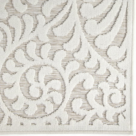 The My Texas House Bluebonnets Floral Indoor/Outdoor Area Rug is a beautiful addition to any home. Inspired by the Texas fields of Bluebonnets, this rug features a stunning floral pattern that bursts to life in driftwood beige on a beautiful ivory canvas and a high-low texture. It is made with 100% premium polypropylene fibers, ensuring it is virtually non-shedding, stain, and fade-resistant. This makes it perfect for active households as it offers long-wearing elegance. The rug is approved for both indoor and outdoor use, making it a versatile addition to your home. Its neutral colors and soft patterns are easy to incorporate into existing design concepts, adding a touch of elegance and sophistication. The My Texas House Bluebonnets Rug created is also easy to maintain, requiring only occasional professional cleaning. A non-skid rug pad is recommended to prevent sliding, provide cushioning, and avoid wrinkles. This rug is a testament to Orian Rugs' commitment to crafting rugs of the highest quality and incomparable style since 1979. With its supreme softness, dependable durability, soothing colors, and easy maintenance, this 7'9" x 10'10" is an extraordinary value.