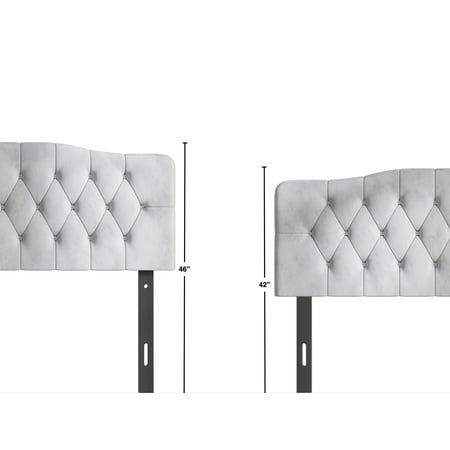 Anchor your bedroom with this luxurious and elegant look headboard. This headboard is perfect for any style of bedroom. The headboard with diamond button tufting stitching and a slightly curved silhouette creates luxe retro glamour and timeless appeal. The headboard is upholstered in high-quality and soft-touch velvet finish, if you need to reading or watch movie in bed, you need a high-quality and comfortable headboard that gives you good support, and our headboard absolutely the ideal choice! Plus, this headboard is adjustable, you can adjust the height to perfectly fit to your bed frame and mattress. The headboard is available in three colors velvet fabric which included Light grey, Silver grey and Light blue. You can choose from these three colors to best complement your bedroom. This headboard comes with various sizes. Choose from Twin, Full, Queen and King headboard to match with your bed frame.