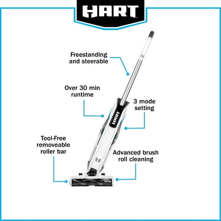 When it comes to lightweight and convenience, you can’t beat the HART 20V High Capacity Cordless Stick Vacuum. A mix between a stick and an upright vacuum, this vac combines the benefits of a lightweight, cordless stick vac, with the free-standing design and XL dirt cup capacity of an upright vacuum. It has 3 mode settings to easily transition between multiple floor surfaces. The included 20V battery offers over 30 minutes of runtime*, and fully charges in only 2 hours. With an XL dirt cup, you can spend more time cleaning and less time emptying. Additionally, this model includes a tool-free removable roller bar making maintenance simple. The steerable design allows you to easily maneuver around objects and furniture. Plus, it’s free-standing, so it’s convenient to store. This stick vac is also battery-powered, so you can move freely from room to room without the hassle of a cord. In addition to the vacuum, the kit includes a 20V 4.0Ah Lithium-ion Battery, Fast Charger, filter, and operator’s manual. All HART 20V Batteries work with all HART 20V tools. *On hard floor mode