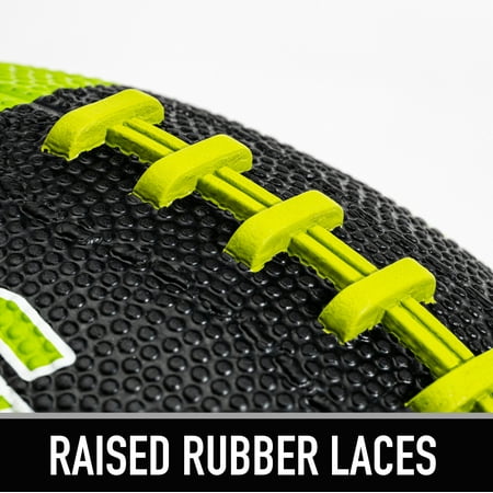 These junior-sized footballs are designed for younger players to be able to throw and catch with ease. The dimensions are official junior size 10" long by 6" wide which makes these footballs perfect for kids. The deep-pebbled rubber surface makes these footballs easy to grip for better throws and catches. Plus, the pro-style raised laces make it easy for smaller hands to control and toss the ball for accurate spirals. The ultra-durable rubber construction ensures that you can use this ball on grass, sand, or concrete without having to worry about tearing or damage. Franklin Sports Grip Rite 100 Junior Footballs are the perfect footballs for kids to toss around in the playground, at the park, on the beach, or anywhere else the game takes them.