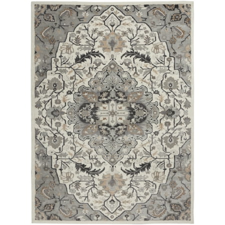 From vintage floral patterns to crisp geometric and abstract designs, the Elation Collection of area rugs creates a chic foundation for your décor. Choose from a range of rug sizes to complement your entryway, living room, or bedroom with fresh style. Expertly crafted of low-profile polypropylene and polyester fibers for lasting comfort, easy cleaning, and soft texture. Create a welcoming environment in your living room, bedroom, dining room, or home office with this Elation Collection area rug. A Persian-inspired floral medallion in cool grey and ivory hues add a soft and elegant vibe to boho chic, farmhouse, and contemporary decor. This vintage-inspired design is machine made of polypropylene and polyester for soft texture, easy cleaning, and lasting comfort.