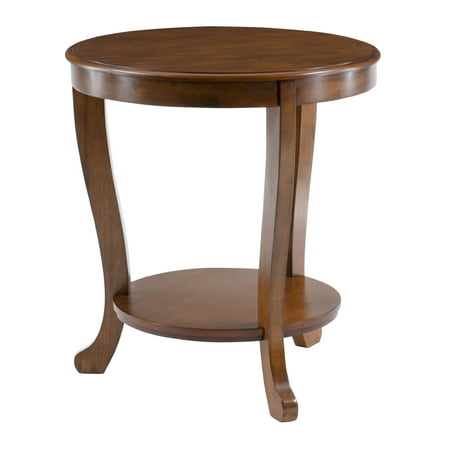 This beautifully crafted Powell Kendall round accent table can seamlessly flow into any number of decors, from Cottage to Bohemian, from Coastal to Teen. Featuring a generously round table top and eloquently curved apron, there are three stylishly tapered legs and a lower shelf to display or store your precious mementos. The simplicity of design adds to the inherent beauty of this multi-functional table. Use this accent table as a chairside end table, a stand-alone accent table, or order two and use them as on-trend nightstands. The options are limitless! Available in a variety of colors.