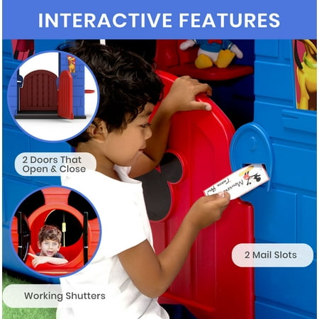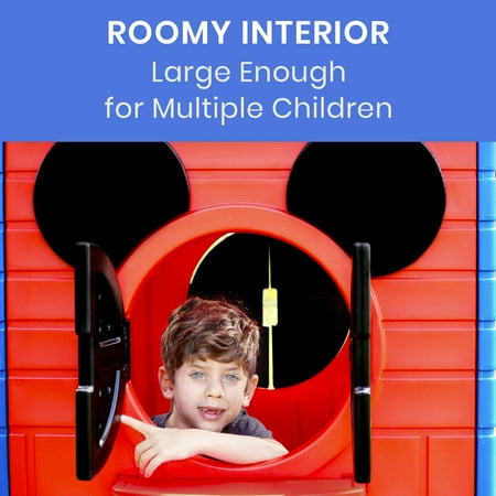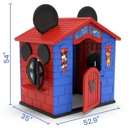 The incredibly easy snap-in assembly ensures the playhouse and the magic of Disney are ready for your child to experience in only a few minutes. Great inside or outside, this cool Clubhouse features big Mickey ears on top of the shingled roof and colorful character decals all over. A fun place for pretend play and child development, this playhouse stimulates imaginations and fine motor skills with its two Dutch-style doors, working shutters, mail slots, plus built-in interior and exterior tables for crafts, snacks, and more. The spacious interior space is large enough for several kids to play at the same time and the durable plastic construction is non-toxic, odorless and weather-and fade-resistant to withstand years of use in the backyard, playroom or basement.