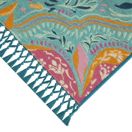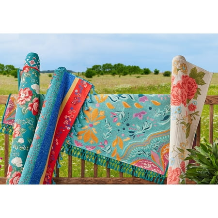 Add a little frontier flair to your outdoor space with The Pioneer Woman Turquoise Folk Geo Outdoor Rug. This gorgeous rug is the perfect finishing touch to any outdoor area. Its chic and playfully balanced floral design is filled with vibrant pink, orange, yellow, blue, and turquoise hues that not only offer a pop of color to your outdoor decor, but also help create a cheerful atmosphere that's perfect for entertaining guests or sharing a meal with family or friends outside. Plus, it's durably made from a combination of polypropylene and polyester materials that allow the rug to withstand the elements while maintaining its looks. Instantly liven up the look of any outdoor space with the authentic style and vintage charm of The Pioneer Woman Turquoise Folk Geo Outdoor Rug.Meet Ree:Ree Drummond is a NY Times Best Selling Author, TV personality, social media phenom, and the woman behind the popular Pioneer Woman lifestyle blog that started it all. She's also a lover of butter, basset hounds, Ethel Merman, her hunky, cowboy husband Ladd, and their four kids. Her casual country style and delicious recipes have made her a go-to for all things cooking and entertaining.