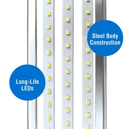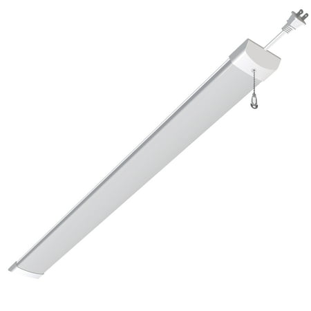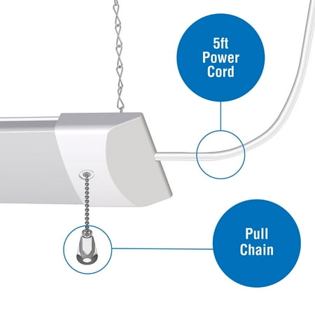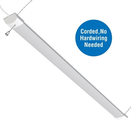 The Hyper Tough 3200 lumen slim shop light uses a unique design to allow for installation indoors such as closets, attics, bathrooms, and more. It also contains a hanging kit for installation in garages, workshops, offices and anywhere a shop light is needed. The durable steel construction is suitable for damp locations and the white color coordinates with any space. Also included is a 5ft power cord and easy installation mounting hardware. No hardwiring is necessary, and the convenient on/off power is controlled by a 6-inch pull chain.