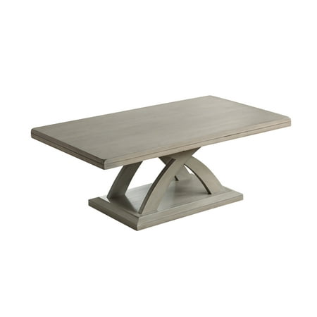 The Jocelyn Coffee Table from Steve Silver is an exquisitely crafted, casual yet sophisticated table featuring a decorative base with a thick top. Its' light gray finish only adds to the warmth of your indoor living space while the crisscross legs add visual interest. This table has a unique minimalist frame and clean lines to only compliment your surrounding decor. The mango veneer adds a modern style combined with classic look.