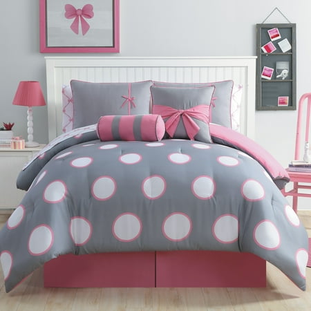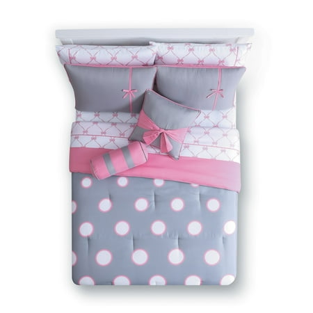 Add playful personality to your child’s space with the VCNY Home Sophie Polka Dot Bed-in-a-Bag Comforter Set, which features pretty polka dots and bows. Made of soft microfiber, the comforter’s oversized polka dots are beautifully offset with bow accents, a motif that is carried throughout the sham, flat and fitted sheets, pillowcase, and decorative pillows for a perfectly coordinated look.