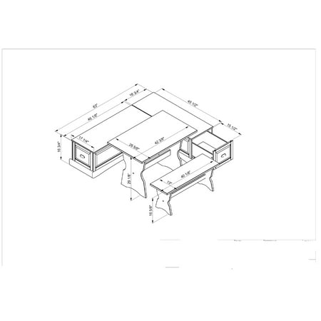 Size: Nook: 63"w X 45.5"d X 16.8"h Bench: 40.1"w X 13"d X 16.6"h Table