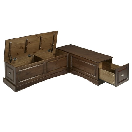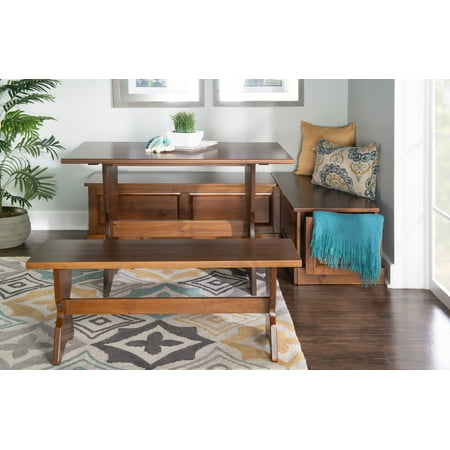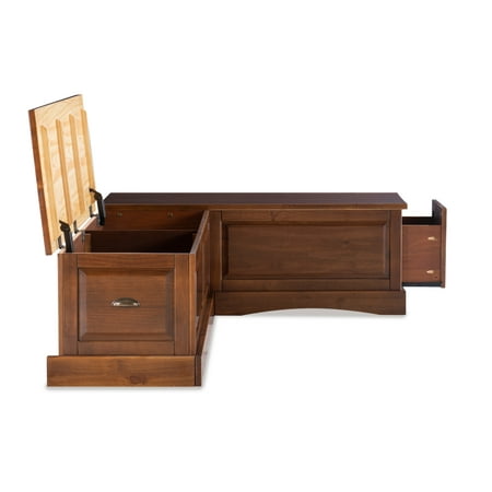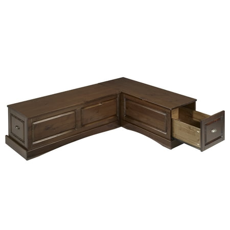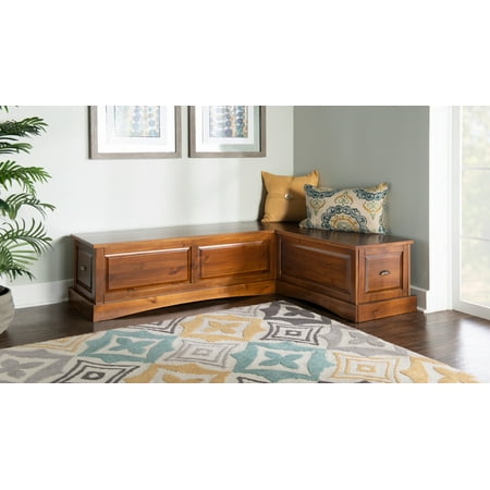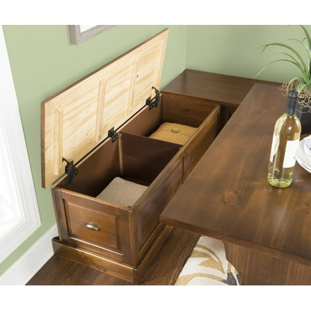 Blending classic style with convenience, this Linon Trefny Backless Corner Dining Breakfast Nook with Storage features space-saving corner design to instantly transform any home. The L-shaped bench features a lift-top seat to reveal a large storage compartment. Ideal for an apartment, open concept home, or spacious kitchen, this set transforms any empty corner of your home with its rich walnut finish and traditional stylings.