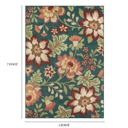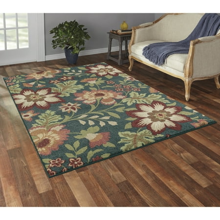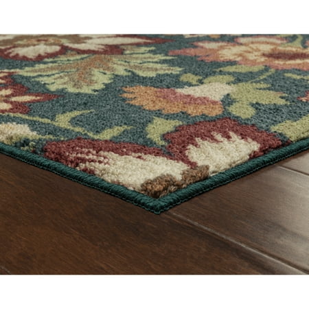 Allow your interior design to blossom with the Mainstays Multi-Color Floral Loop Pile Print Area Rug or Runner Collection. The oversized floral design features subtle and chic colors against three background color options of gray, teal or Ivory. The Mainstays Floral Loop Print Rug Collection is available in sizes ranging from a 1'8"x2'10" accent rug, two runner sizes and up to a 7'x10' area rug. All rug sizes are constructed with 100 percent polyester yarn and have skid-resistant latex backing to help keep the rug in place on your floors. The accent and runner rug sizes are machine washable for easy care. Area rug sizes should be spot clean or professionally cleaned. Not only will this eye catching motif be a delightful update to your living room, this rug can be placed in any room of your home including the living room, bedroom, dining room or home office.