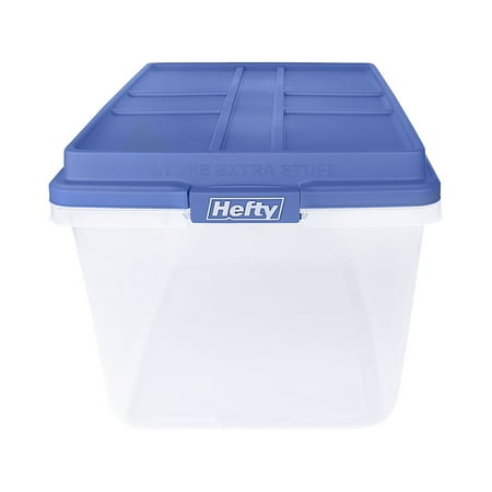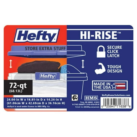 Looking for the best storage bins to organize your home or move to a new one? In search of a durable storage container to stow away anywhere in the home, garage, or attic? Look no further! The Hefty HI-RISE, 72 quart clear storage bin is designed to store a variety of household items including, clothing & shoes, seasonal items and accessories. Ready to neatly STACK? Hefty’s HI-RISE patented lid design allows for secure stacking and ABOVE the rim storage, to efficiently save space within your home. A CLEAR view? Identify items quicker and more effectively with the HI-RISE clear storage base. The large, click secure latches allow for secure and comfortable transport. Work to maintain your storage space and organize your household with maximum containment. Store and better protect items to SAVE SPACE and edit your home or business. Check out the complete line of Hefty HI-RISE storage bins to help create a clean & uniform storage space! Adult usage.