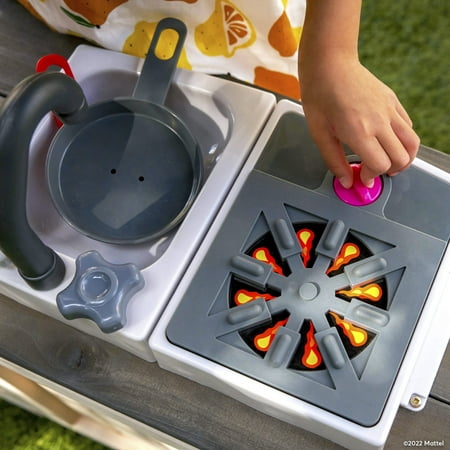 The Barbie™ Seaside Playhouse by KidKraft inspires kids to take their imaginations to a bigger venue—outside! With iconic Barbie colors and styling, this modern, wooden playhouse is the ideal setting for Barbie and her friends to chill in the backyard. An airy design lets the play and the stories flow from inside to outside seamlessly. A double-sided island backdrop allows kids and Barbie to visit the beach from sunup to sundown. The open, framed ground area is perfect for creating a sandbox for discovering seashells, building sandcastles or just relaxing (doll-sized chaise lounges are included). Cook up a fresh meal in the play kitchen and serve it to guests at the window ledge with café-style awning. Even Barbie can join in the meal—a miniature picnic table attaches to the side for an al fresco dining first! With Barbie's classic silhouette on the half door of this playhouse welcoming you in, you know this retreat is sure to be fun, stylish and full of endless imaginative possibilities.