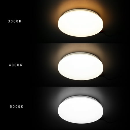No bulbs required. This Mainstays light fixture has energy-efficient, high-quality LED's built-in that will last for 50,000 hours of operation (about 45.7 years). Say "goodbye" to replacing light bulbs! The on-board switch allows you to choose between three different color temperatures of light, ranging from soft warm white to cool daylight. It works with most dimmer switches, and is dimmable down to 10%, allowing you to choose the best ambiance for your room. The light weight metal base and durable plastic lens both make installation quick and easy. 1100 lumens of light will provide the brightness you would expect from a traditional 75W equivalent light bulb. Ideal for use in hallways, bathrooms, closets, kitchens, laundry rooms, attics, basements, living rooms, and more!