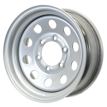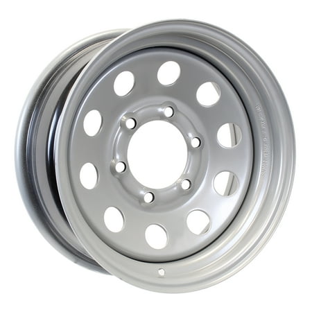 15 Inch Diameter x 6 Inch Width; 6 x 139.7 Millimeter/ 6 x 5.50 Inch Bolt Pattern; 0 Millimeter Offset; 3.50 Inch Backspacing; 60 Degree Conical Seat Lug; 108.46 Millimeter Center Bore; Mini Modular; 2 Piece Welded Steel Construction; Morton Silver; 2830 Pound Load Capacity; Without Center Cap; Single