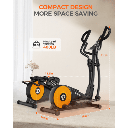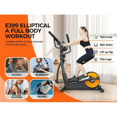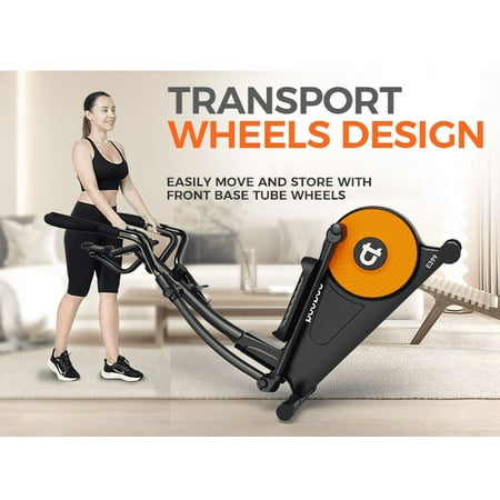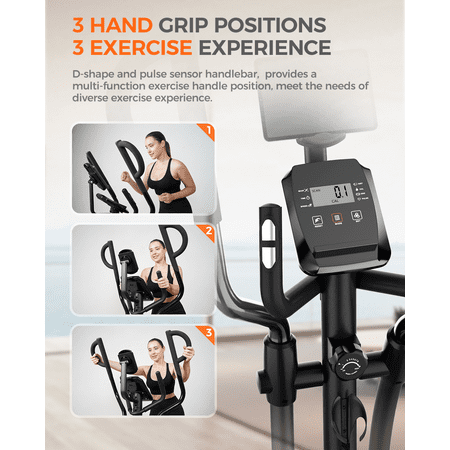 The LCD monitor display gives you all the information you need, and if you prefer you can place a tablet computer in the holder for watching videos while you workout. - 3 Hand Grip Positions, 3 exercise experience. ①The Fixed Low Position on fixed handlebars built-in pulse sensor for heart rate monitoring. This position use for low height, sitting back with your weight during exercise, give you a peachy hip. ②The D-shape Wide Outer Position does arm stretching exercise, suitable for users with high height and wider arm span. ③The D-shape Wide Inner Position, a comfortable handle position, exercise waist and back. - The elliptical machine combines exercise such as walking, climbing steps, cycling, and skiing, engage up to 90% of your body's muscle groups.The elliptical is ideal for exercising your legs, arms, waist and hip muscle, give you a full-body workout. Perfect for harmonizing the limbs, improving physical endurance and athletic ability, and also can used for convalescent treatment, weight loss, body shaping, strength training, and more. -Foldable Size for Home. The foldable design allows it to fit into any corner of your house. With the transportation wheels enable you to move it to any location. No need for any electric power source, easy to exercise, not limited by space. Package Notification: To protect our machine with safe package, the red tubes(updations) are protect the machine, which will be useless after delivered, pls don't worry for the quality.
