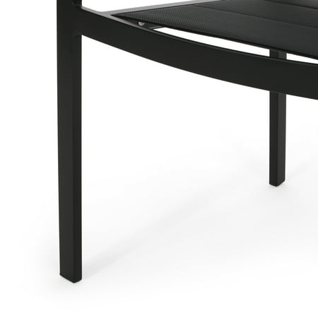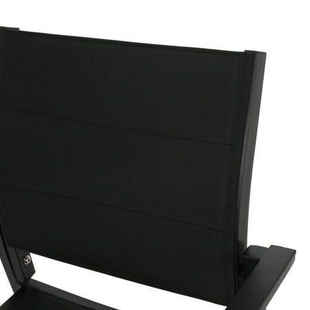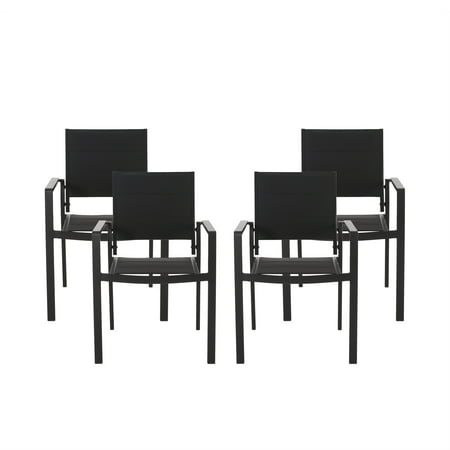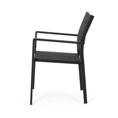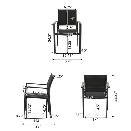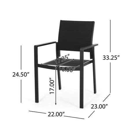 Escape the monotony of the indoors and enjoy a hearty outdoor meal in excellent seating. Made with aluminum frames that are accented with faux wood armrests, our durable and stylish dining chairs bring modern luxury and convenience to your backyard or patio space. This set of chairs is finished with breezy mesh seating that provides both incredible stability and unparalleled aesthetics for your space. From dinner parties to casual lounging, our dining chairs are the perfect finishing touch to any outdoor get-together.