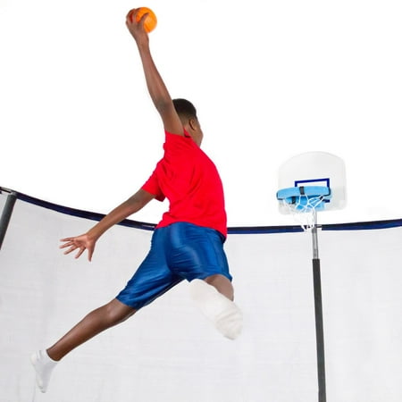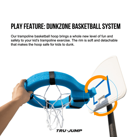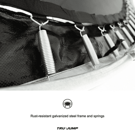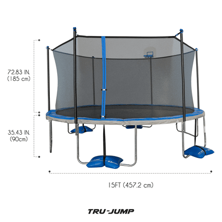 TruJump wanted to design an all-in-one trampoline that your whole family will love and have fun! The all new TruJump15ft trampoline and enclosure combo is designed for a decent size yard and came with a new innovative anchor system that allows the trampoline to be anchored in any ground condition to prevent strong winds from moving your trampoline. The basketball system is easy to install on the enclosure pole, and the soft breakaway rim makes it safe for kids to dunk. TruJump trampoline is all about safety and encouraging your kids to go out and exercise more! Powered by safety 6-pole enclosure, kids can soar to a new height of backyard fun and keep safe inside the trampoline. This trampoline features 220 lb weight capacity with an durable, UV resistant trampoline park quality jump mat built on a thick walled and double galvanized steel frame. This 15ft trampoline can handle any trampoline exercise routine in your backyard.