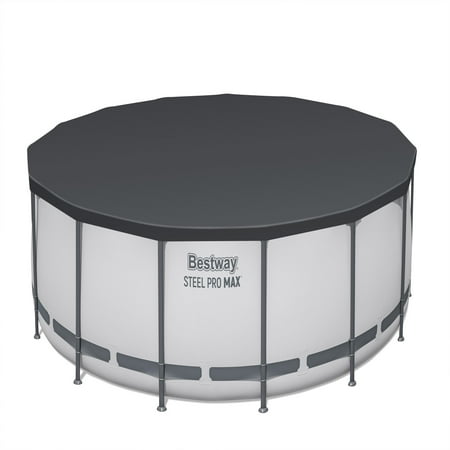 It doesn’t get any better than having your very own pool in your backyard! The Bestway Steel Pro MAX Above Ground Pool offers an ultra durable option at a great price. DURABLE CONSTRUCTION: The durable pool frame is constructed with superior corrosion resistant steel to ensure stability and longevity. The ClickConnect System of frame connectors makes setting the pool up a breeze, with no additional tools or accessories needed. Quickly click each support piece into place for a safe and secure connection. The frame connectors also prevent metal-on-metal contact to ensure corrosion and rust resistance. The sturdy DuraPlus liner is made out of an ultra-durable 3-layer material that is reinforced for strength and puncture-resistance. DuraPlus is 15% more tear resistant, 33% more stretch resistant and 83% more puncture resistant than standard PVC, ensuring your pool will last summer after summer. ADDITIONAL FEATURES: This above ground pool set also comes stocked with a filter pump, a ladder and a pool cover. Plus, this pool is very simple to set up and to take down for off-season storage. No tools are required, and a hose connects to the built-in flow control valve to quickly and easily drain away pool water. Spend your summer on the water in this Bestway Steel Pro MAX pool! SIZE: 5 ft. x 48 in. (4.57 m x 1.22 m). WATER CAPACITY: (90%): 4,231 gal. (16,015 L). PUMP: 1,000 gal. (3,785 L) filter pump included. CONTENTS: Pool, Filter Pump(110-120V) Compatible with Cartridge 58012(Ⅲ)110-120V, Ladder, Cover.