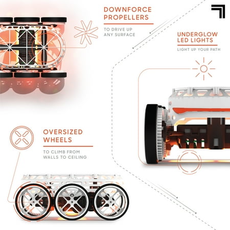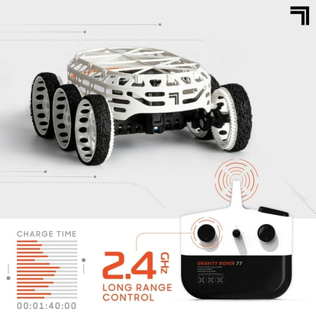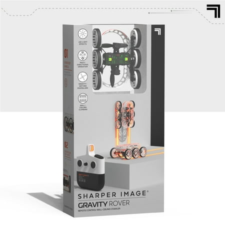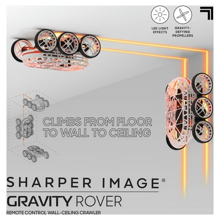 Attention all adventure-seekers and thrill-lovers! Get ready to take your playtime to new heights with the Sharper ImageĀ® Remote Control Gravity Rover Wall-Ceiling Climber. This contemporary designed rover can climb from the floor to walls and even the ceiling, thanks to its downforce propellers and oversized wheels. With its 2.4 GHz remote control, you can take the Gravity Rover on a long-range ride and move it in multiple directions, providing endless hours of fun. Plus, with its under-glow LED lights, you'll never lose sight of the rover, making it perfect for play at any time of day. With its rechargeable lithium battery, the fun never stops!